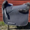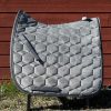 Ett quiltat mattesschabrak i grått med silversnurra i strl XL (passande större storhäst).